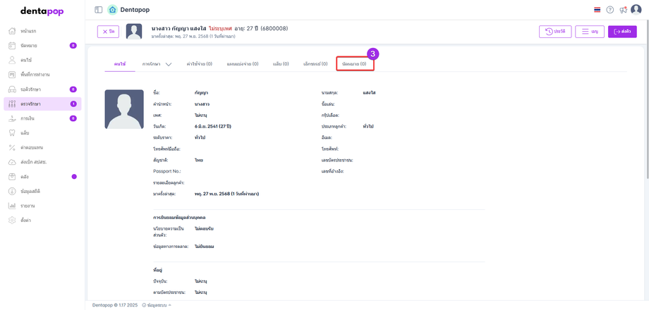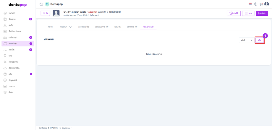 3.ผู้ใช้งานคลิกเข้ามาในข้อมูลคนไข้ให้เลือกหัวข้อนัดหมาย