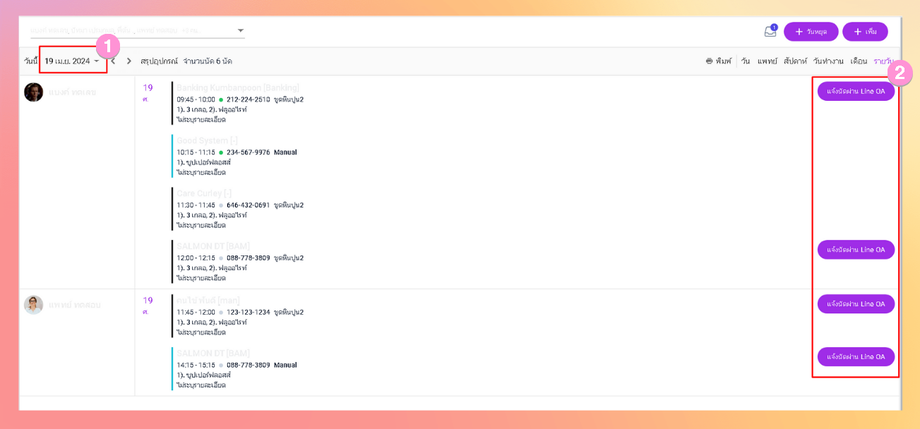 แสดงรายการนัดของแพทย์แต่ละคนได้ชัดอย่างเจน
