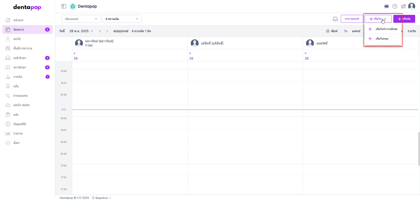 เข้าสู่หน้าเพิ่มวันทำงานพิเศษ