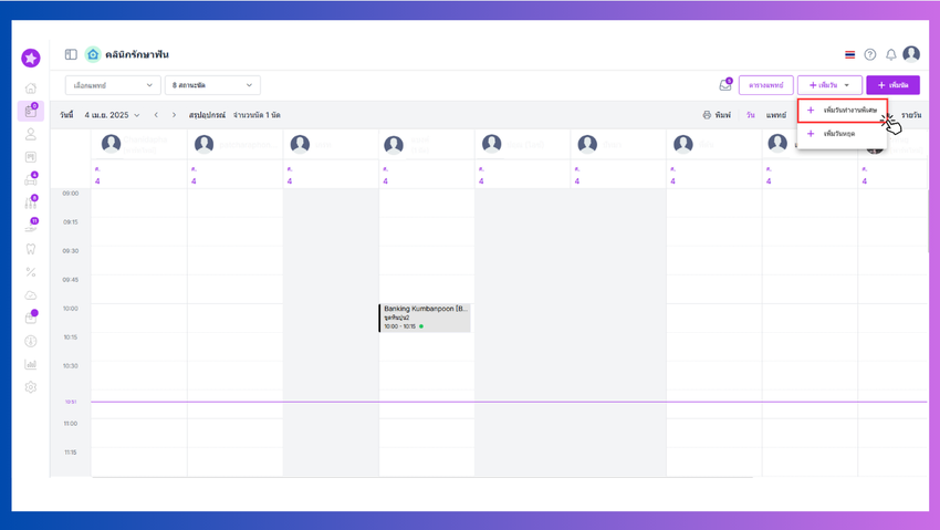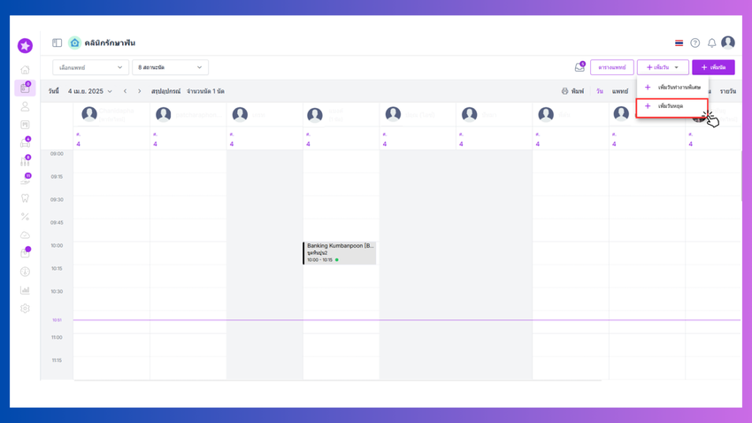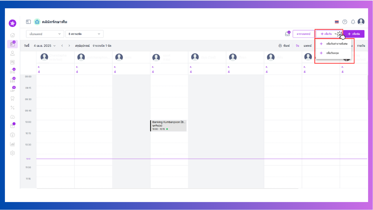 - เลือกแพทย์ "แพทย์ที่จะทำการเพิ่มทำงานพิเศษ"