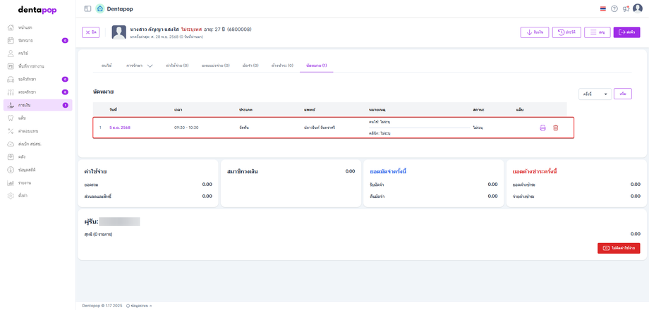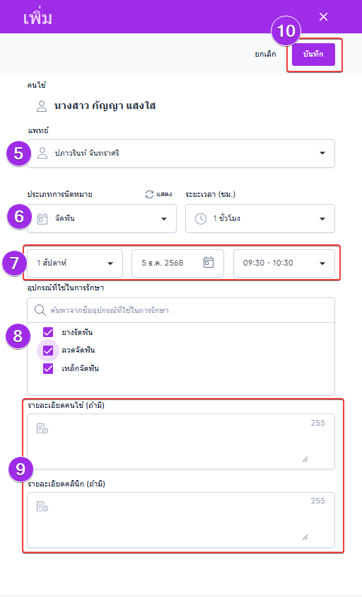 ระบบจะแสดงหน้าการเพิ่มนัดหมายโดยใส่ชื่อคนไข้โดยอัตโนมัติ