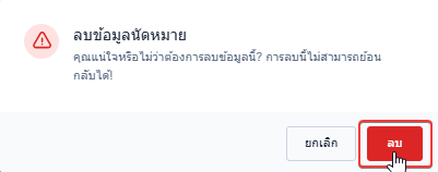 หากผู้ใช้ต้องการลบการนัดหมาย สามารถคลิกที่ไอคอนถังขยะสีแดงและผู้ใช้งานต้องคลิกลบอีกครั้งเพื่อยืนยัน
