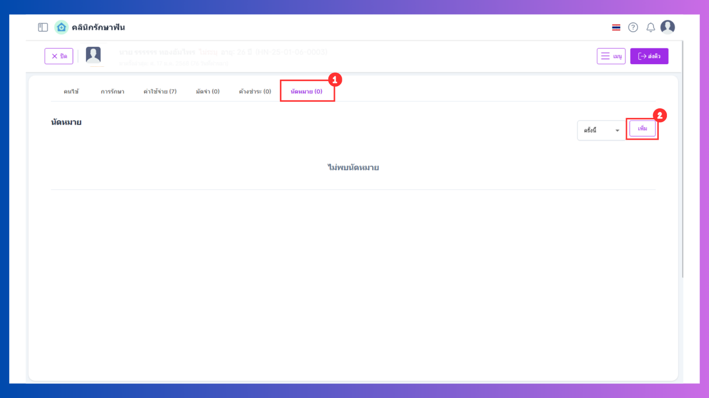 - เลือกคนไข้ที่ต้องการทำนัดหมาย