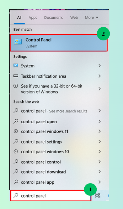 ขั้นตอนที่ 1 พิมพ์ค้นหาตรงช่องวินโดว์ว่า control panel
