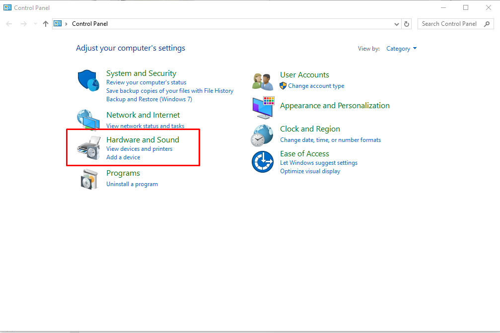 ขั้นตอนที่ 2 เข้าไปที่ Hardware and Sound