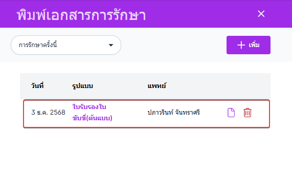 เพิ่มเอกสารการรักษา