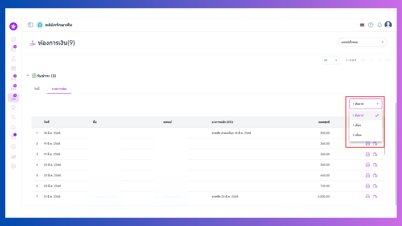 จากนั้นกดค้นหา ระบบจะแสดงรายการรับชำระตามช่วงที่ผู้ใช้งานค้นหา