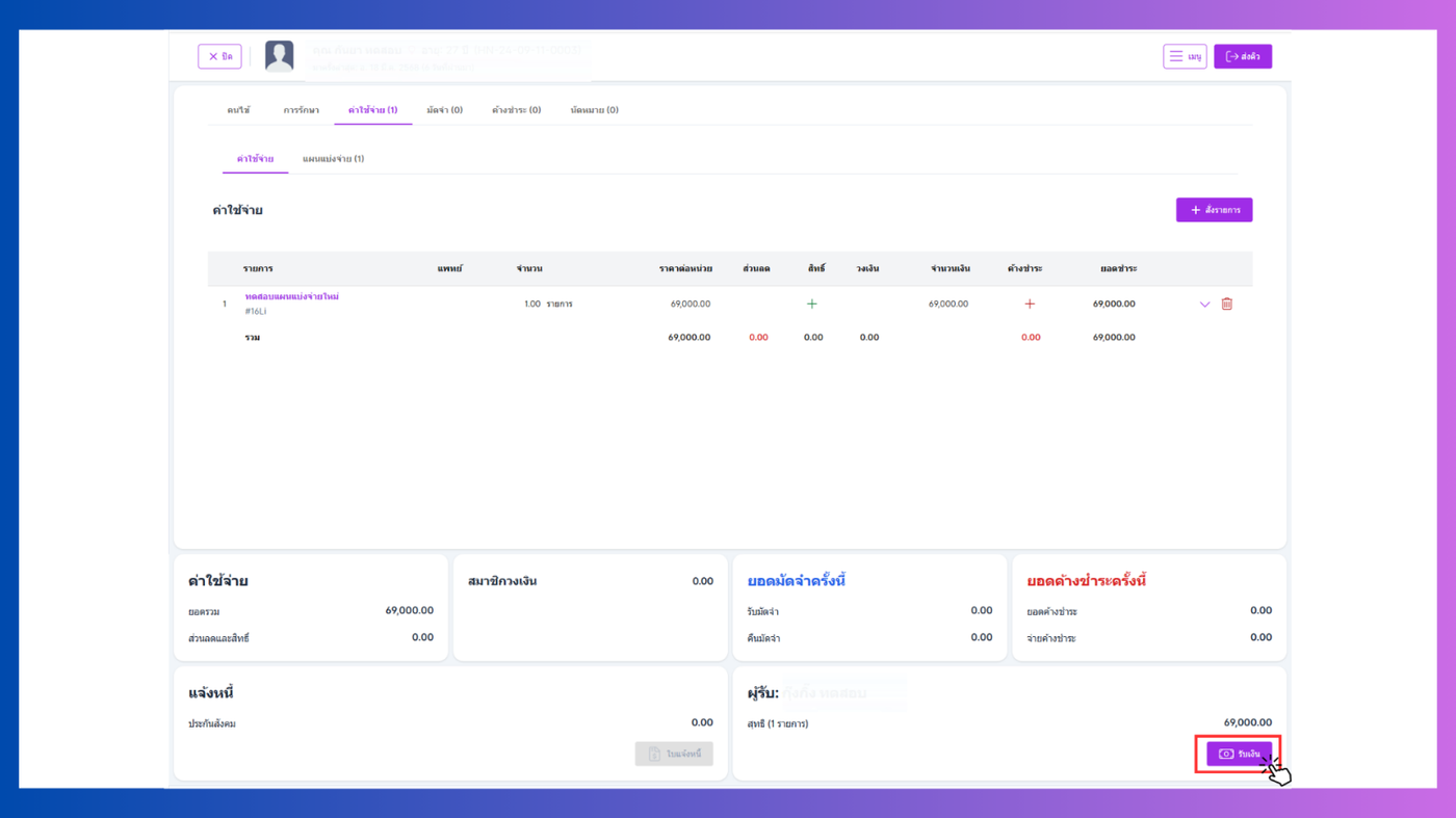 ตรวจสอบยอดชำระ ค่าใช้จ่ายทั้งหมดจากนั้นทำตามขั้นตอน โดยการกดรับเงิน