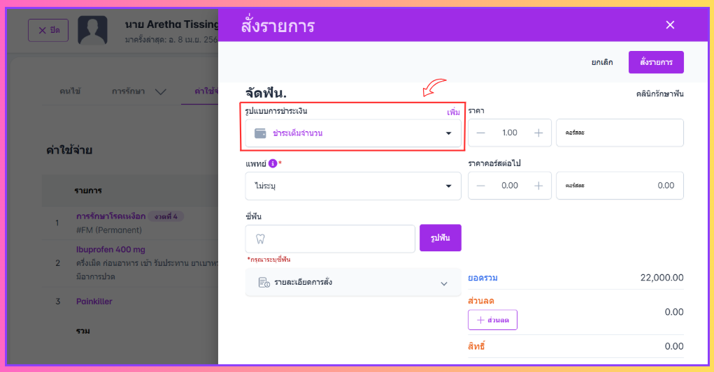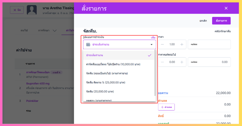 - ส่วนลด : ส่วนลดทั้งหมดที่คนไข้ได้รับ