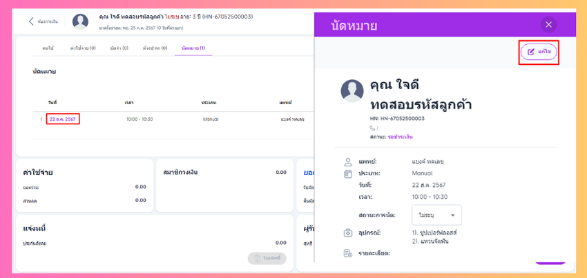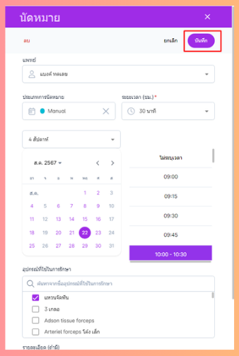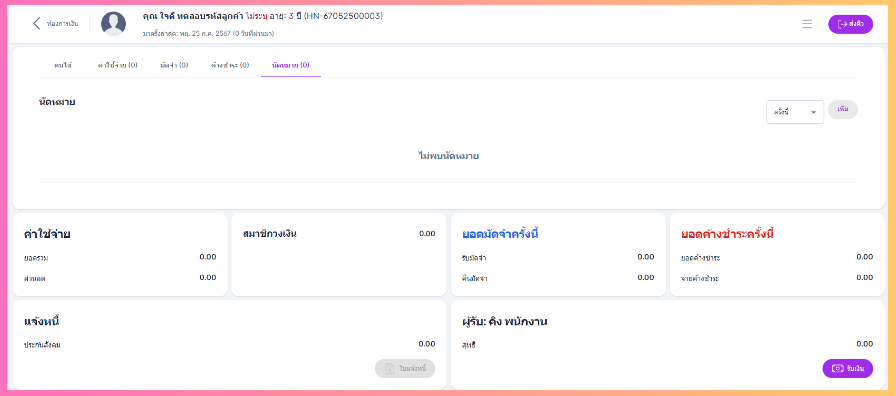ผู้ใช้งานสามารถตรวจสอบนัดหมายของคนไข้ก่อนการรับเงิน หรือ เพิ่มนัดหมายคนไข้ได้ในหน้านี้