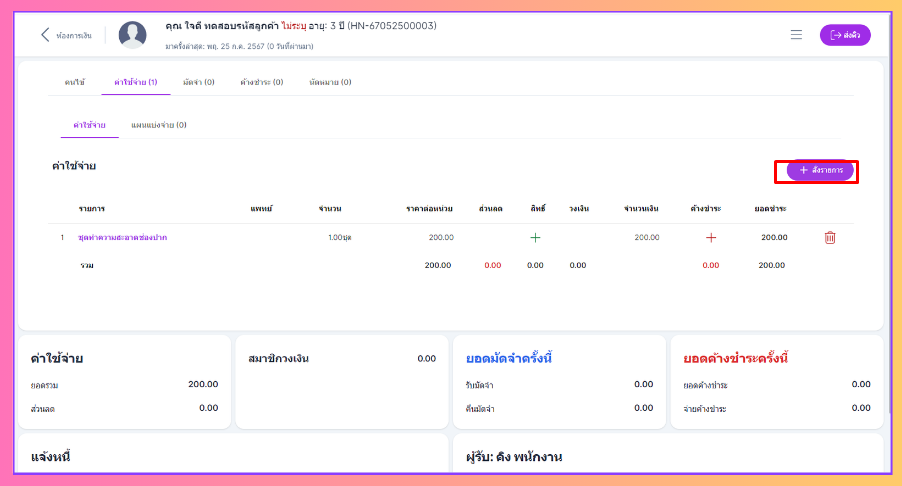- เมื่อผู้ใช้งานสั่งรายการสำเร็จระบบจะบันทึกในค่าใช้จ่าย