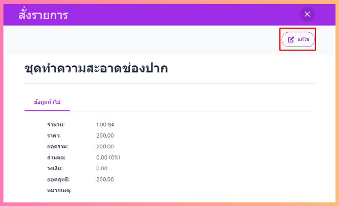 - ระบบจะแสดงหน้าต่างรายละเอียดรายการคลิก แก้ไข