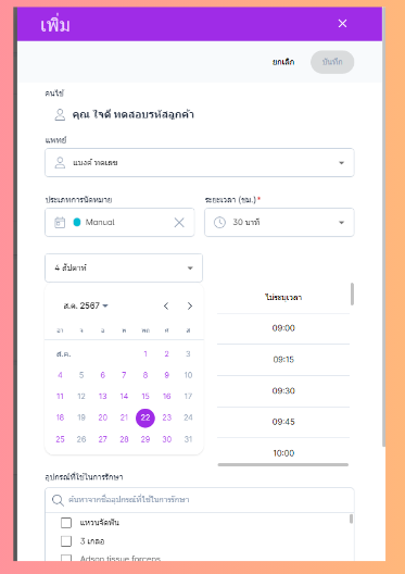 - คลิกที่เพิ่ม ระบบจะแสดงหน้าต่างเพิ่มนัดหมาย