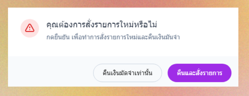 หากยังไม่ได้สั่งรายการที่ทำการคืนมัดจำระบบจะแจ้งเตือนสั่งรายการใหม่