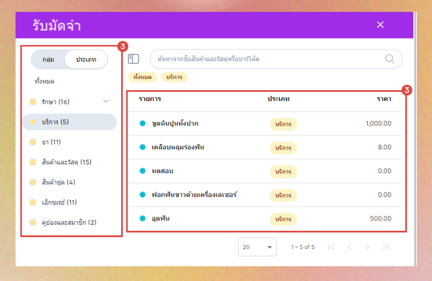 - ผู้ใช้งานสามารถเลือกรับมัดจำรายการสินค้าหรือบริการ