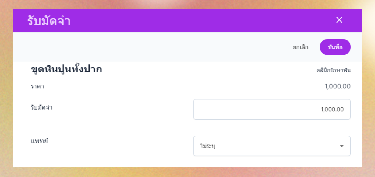 - ระบบจะแสดงหน้าต่างกรอกข้อมูลรับมัดจำ