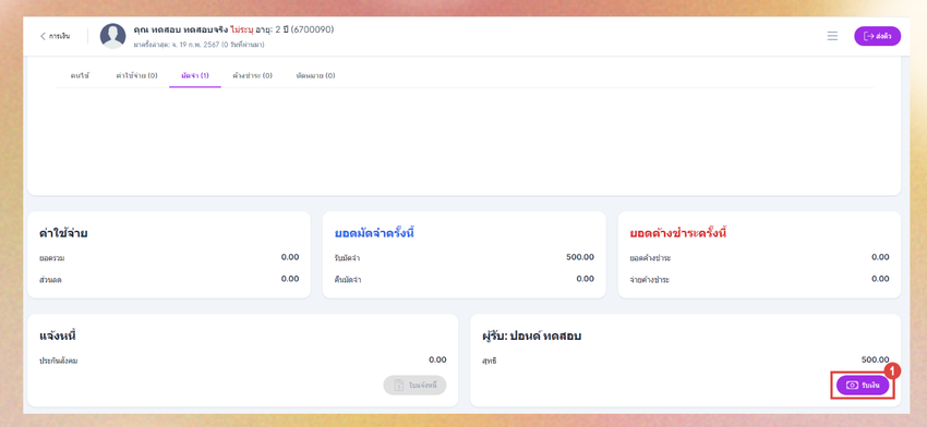 - คลิกที่ปุ่มรับเงิน ระบบจะแสดงหน้าต่างรับเงิน