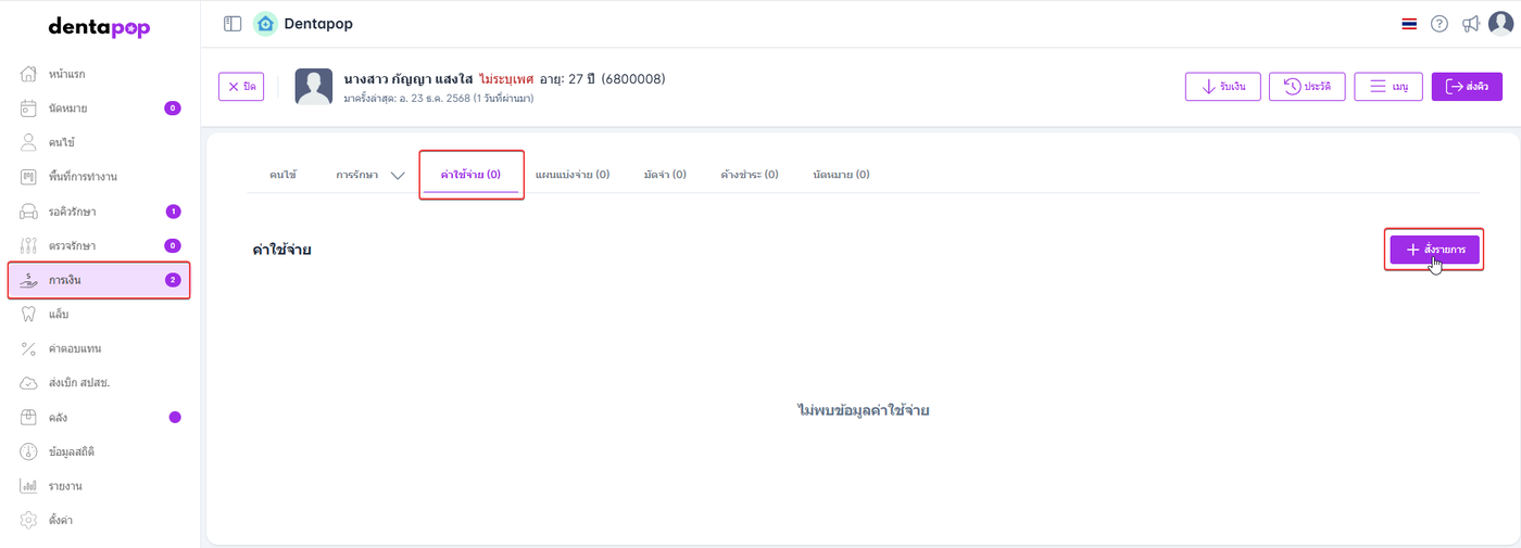 ผู้ใช้งานคลิกเมนู การเงิน และไปที่แถบหัวข้อค่าใช้จ่ายและคลิก สั่งรายการ เพื่อทำการสั่งรายการ