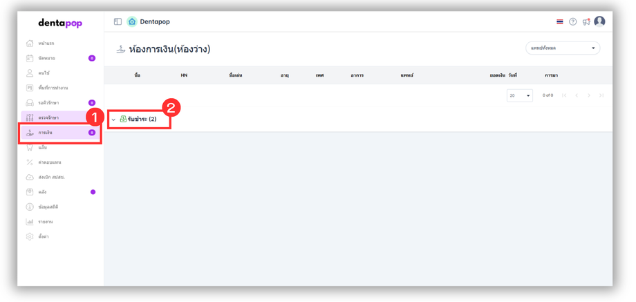 1.ผู้ใช้งานไปที่ ห้องการเงิน