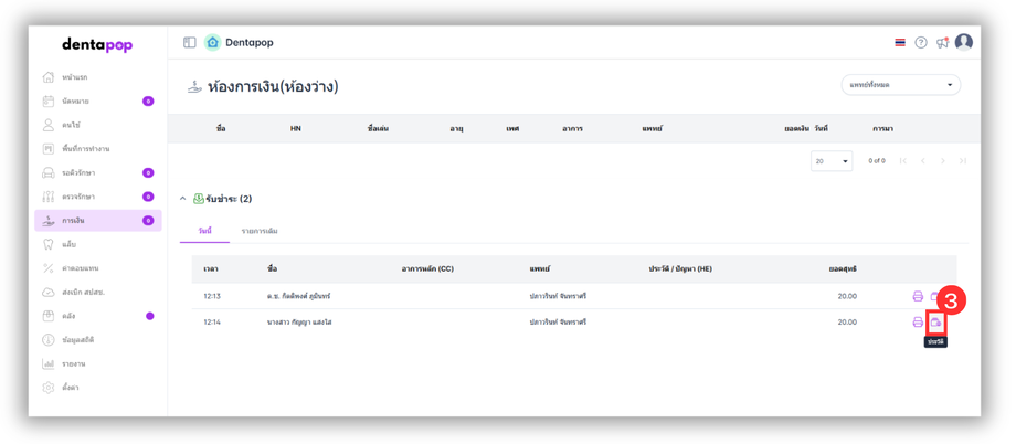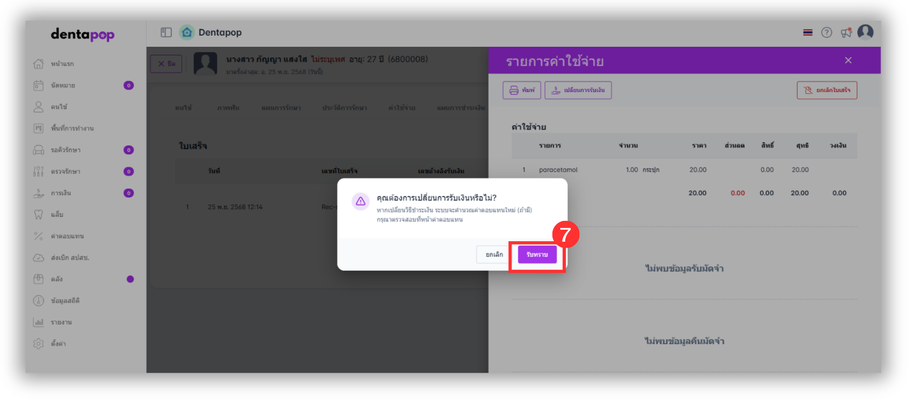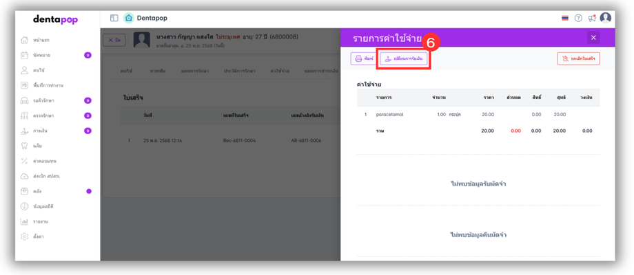 วิธีที่ 2 การเปลี่ยนชำระเงินในใบเสร็จย้อนหลังที่เมนูคนไข้