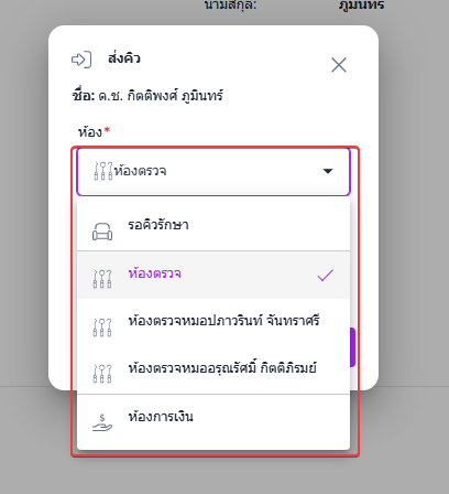 ผู้ใช้งานเลือกห้องที่ต้องการส่งคิว