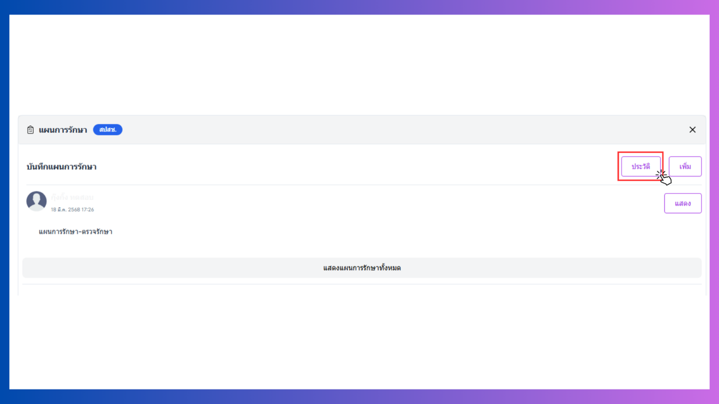 แผนการรักษาสามารถดูความคิดเห็นเพิ่มเติมได้