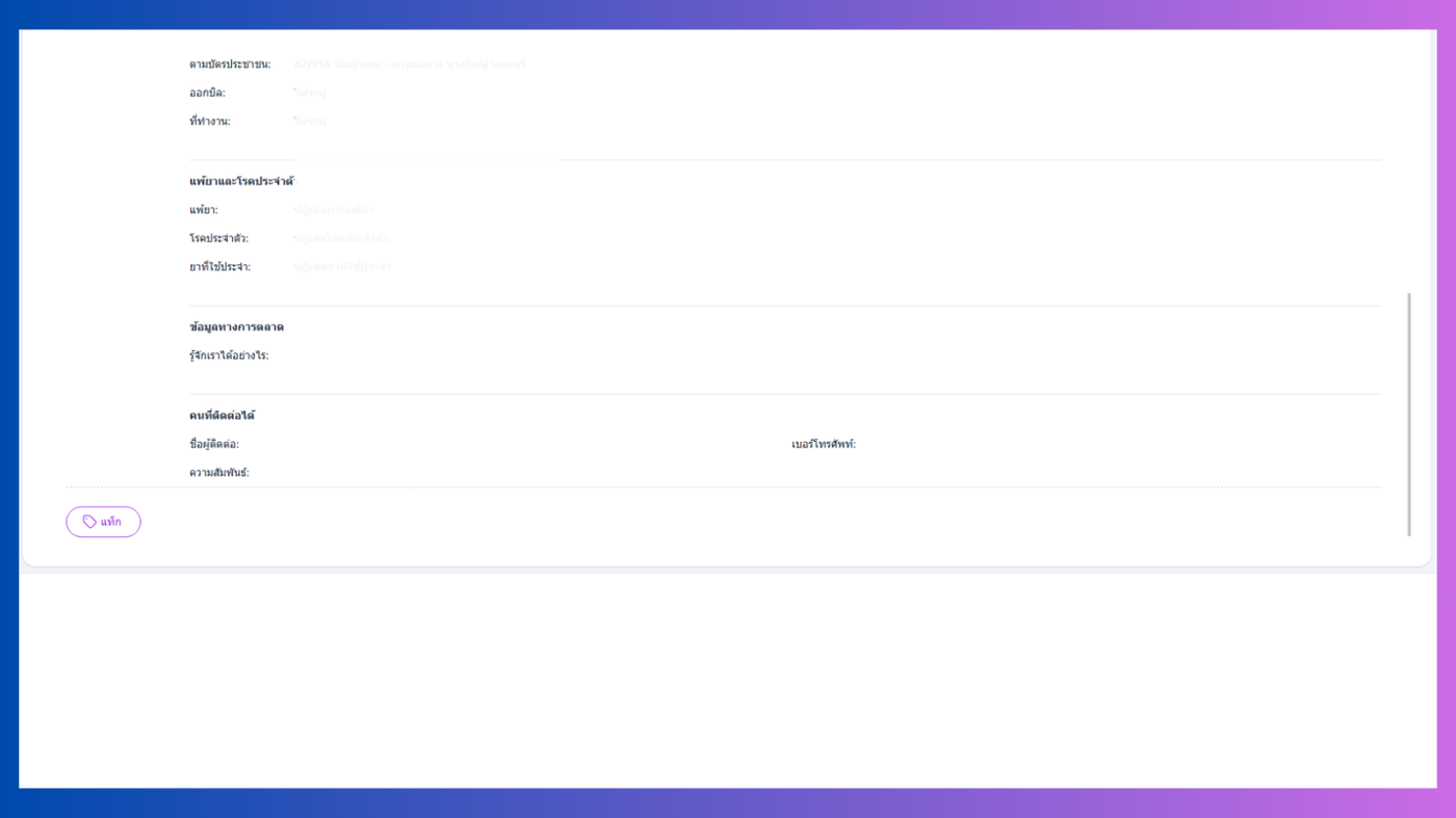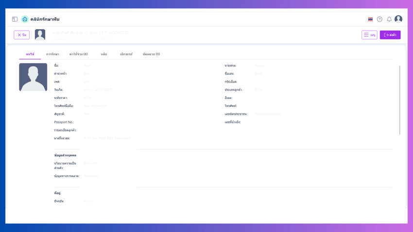 - คลิกชื่อคนไข้ที่ต้องการ ผู้ใช้งานจะเข้าสู่หน้าข้อมูลคนไข้