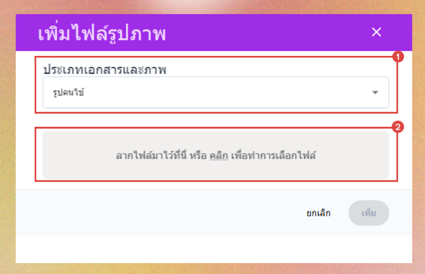 - ไฟล์รูปภาพ : เพิ่มเอกสารที่เป็นไฟล์รูปภาพ เช่น .jpg