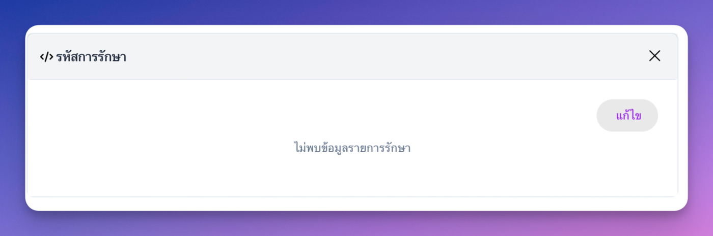 - ผู้ใช้งานกดคลิกที่เพิ่ม รหัสโรค หรือ รหัสหัตถการ