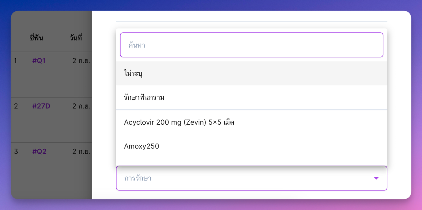 - กรอกการวินิจฉัยแพทย์ เลือกการรักษา
