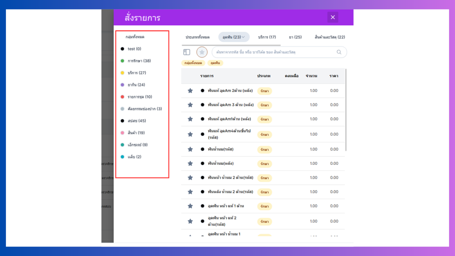 คลิกที่สั่งรายการจะมาที่หน้าสั่งรายการ เลือกรายการที่ต้องการสั่งรายการ