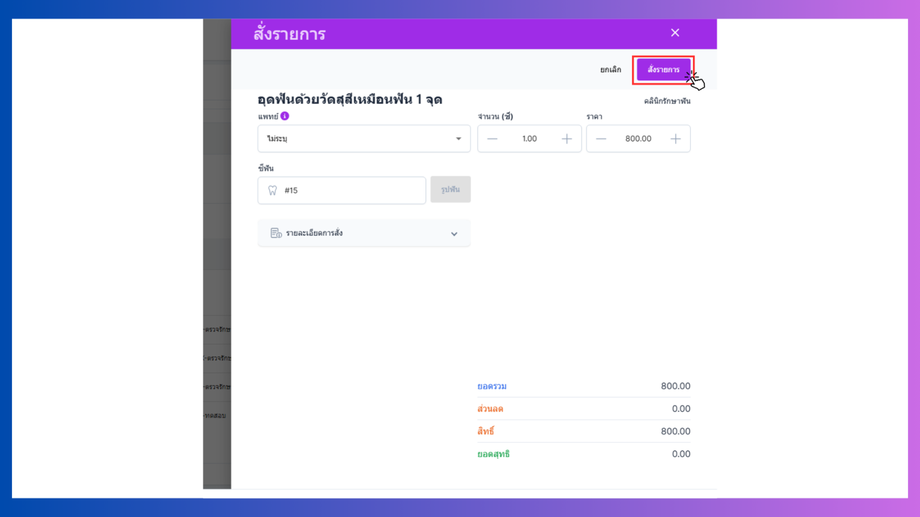 ผู้ใช้งานสามารถดูขั้นตอนการสั่งรายการเพิ่มเติมได้ที่ -> การสั่งรายการ