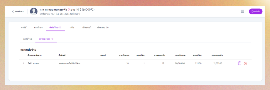 หัวข้อแผนแบ่งจ่ายจะแสดงรายการเมื่อ ผู้ใช้งานสั่งรายการและกำหนดแผนแบ่งจ่ายให้กับรายการนั้น