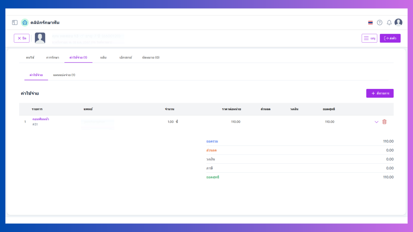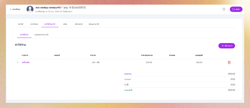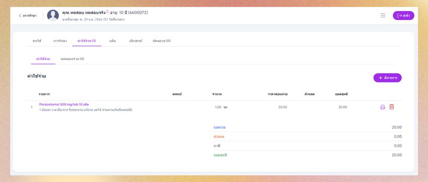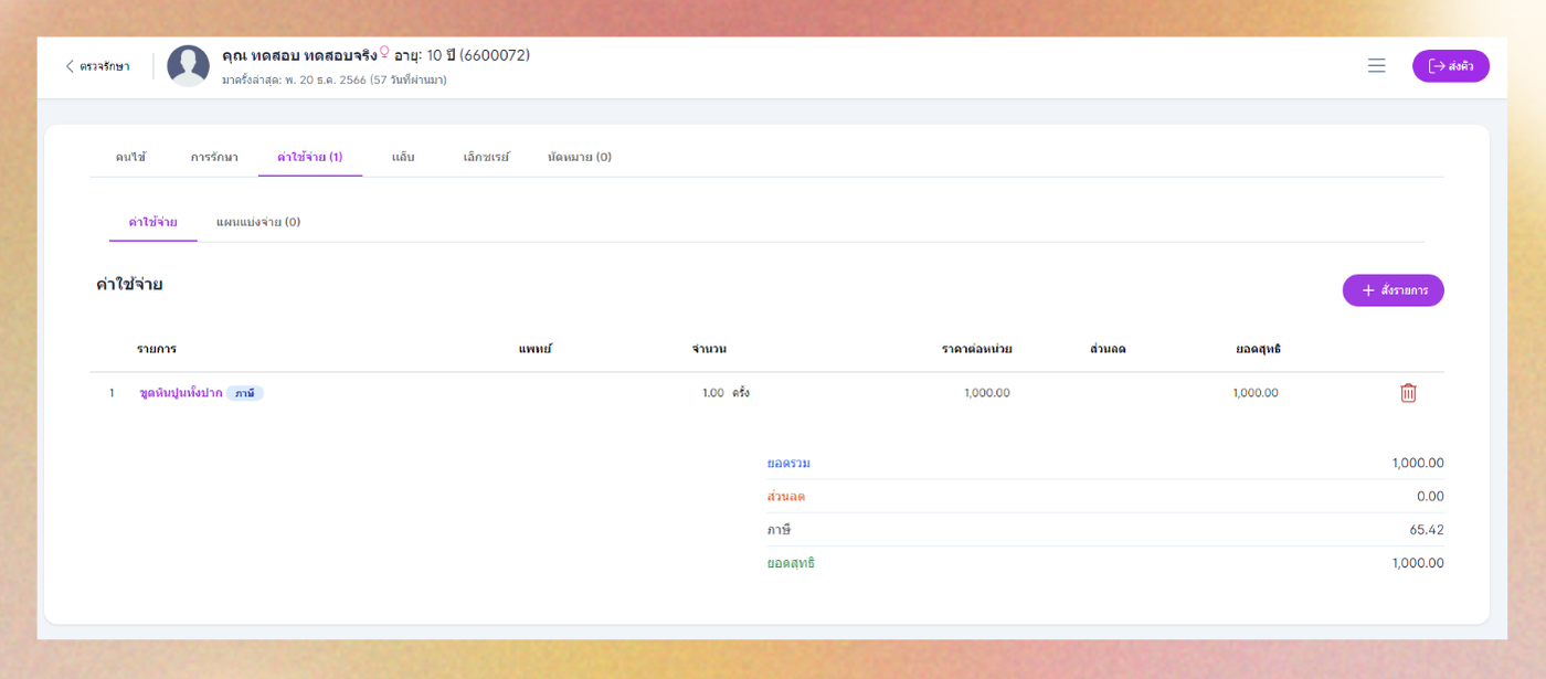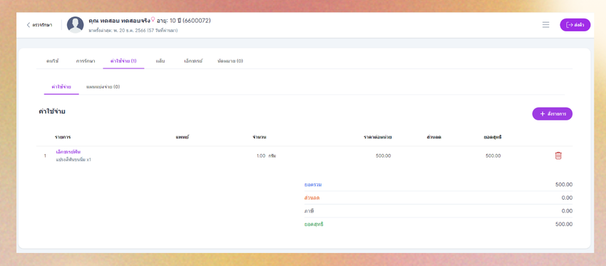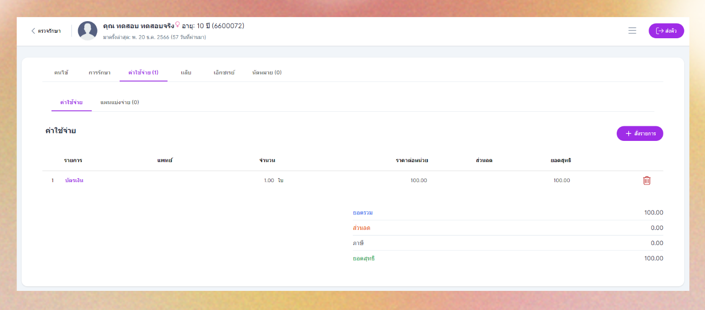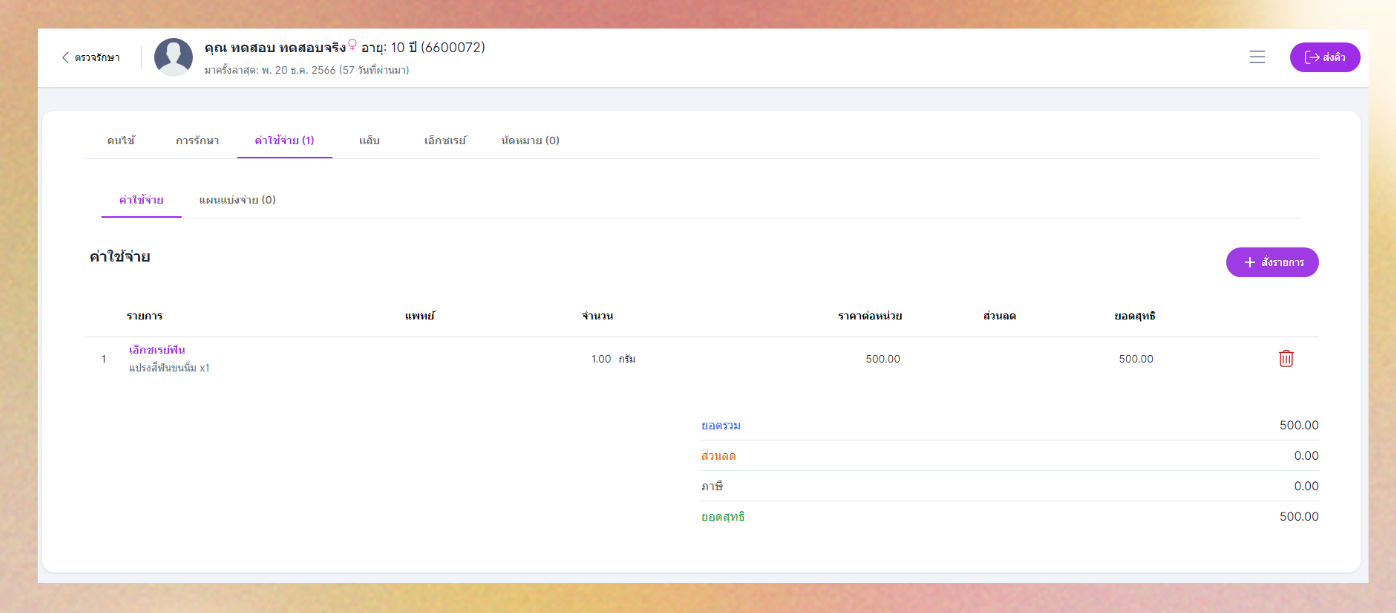 กดสั่งรายการ ระบบจะบันทึกรายการในค่าใช้จ่าย