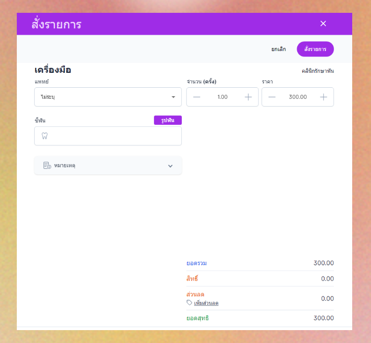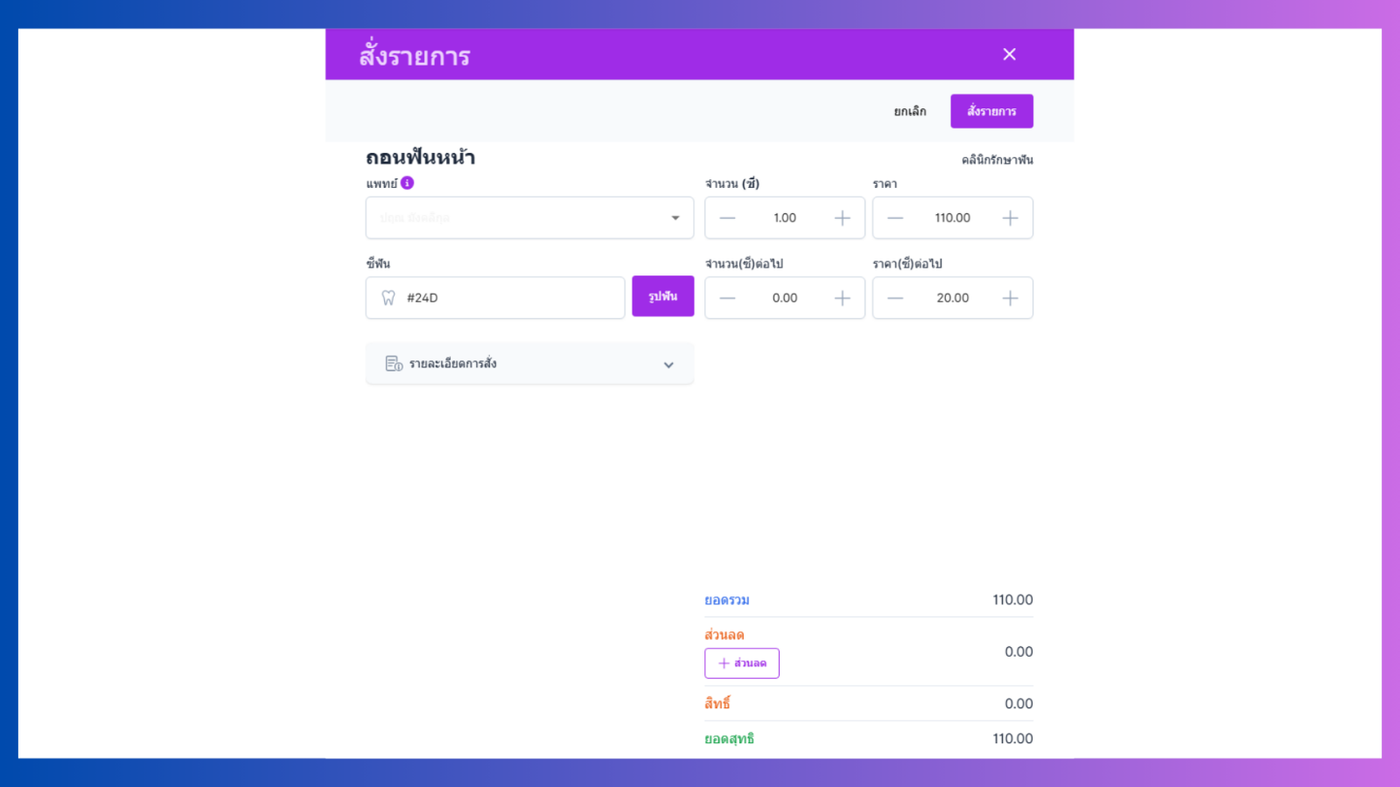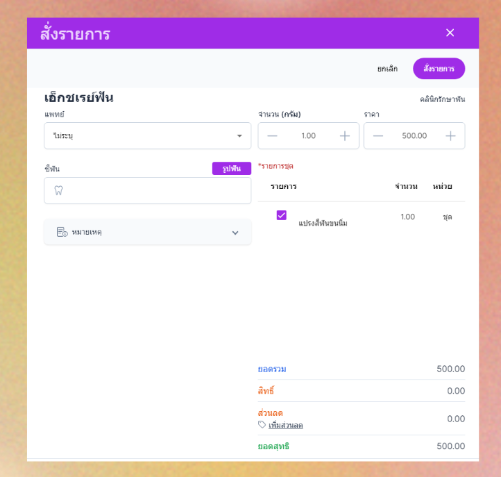 - ซี่ฟัน : คลิกที่รูปฟันเพื่อระบุซี่ฟัน