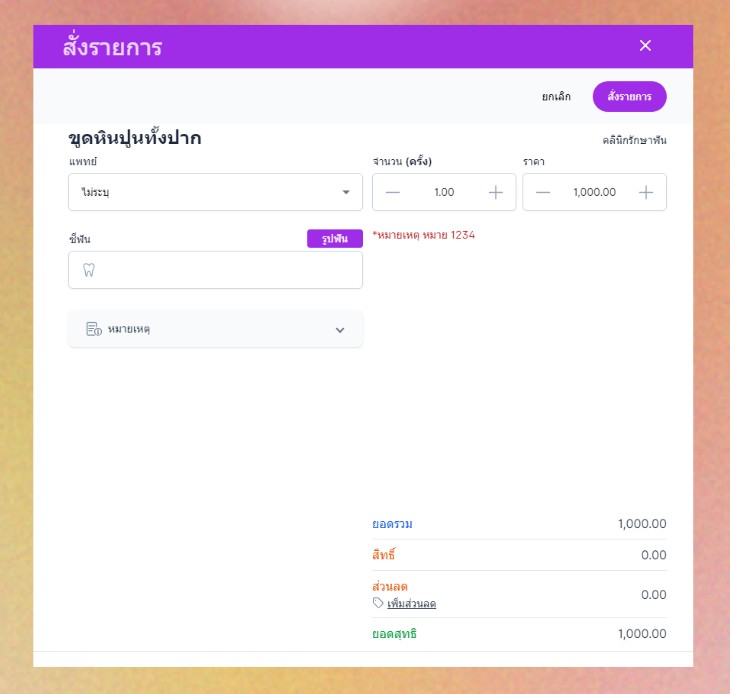 - ซี่ฟัน : คลิกที่รูปฟันเพื่อระบุซี่ฟัน(ถ้ามี)