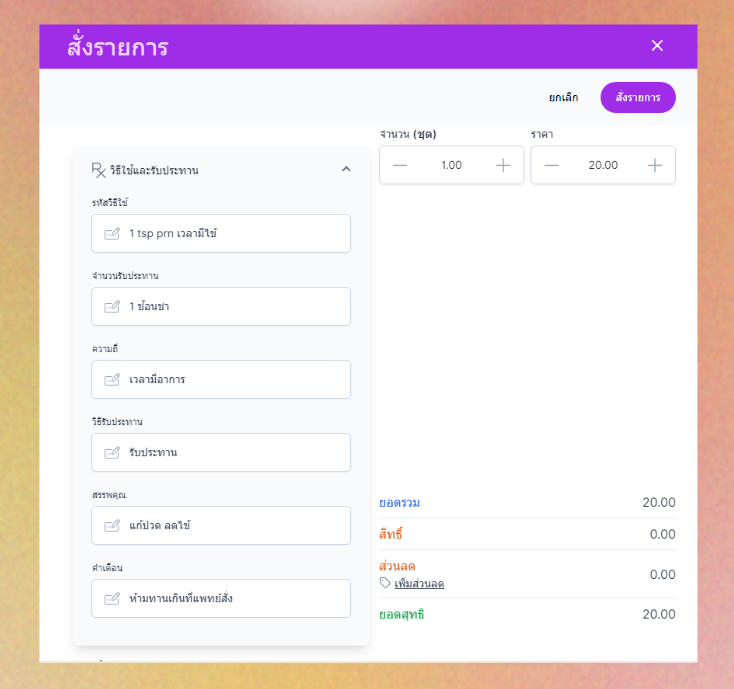 - ส่วนลด สามารถเพิ่มส่วนลดได้