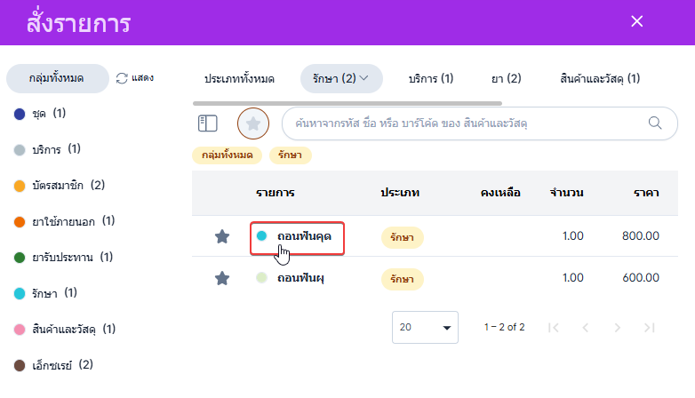 จากนั้นเลือกรายการรักษาที่ต้องการสั่ง ระบบจะเข้าสู่หน้ารายละเอียดรายการ