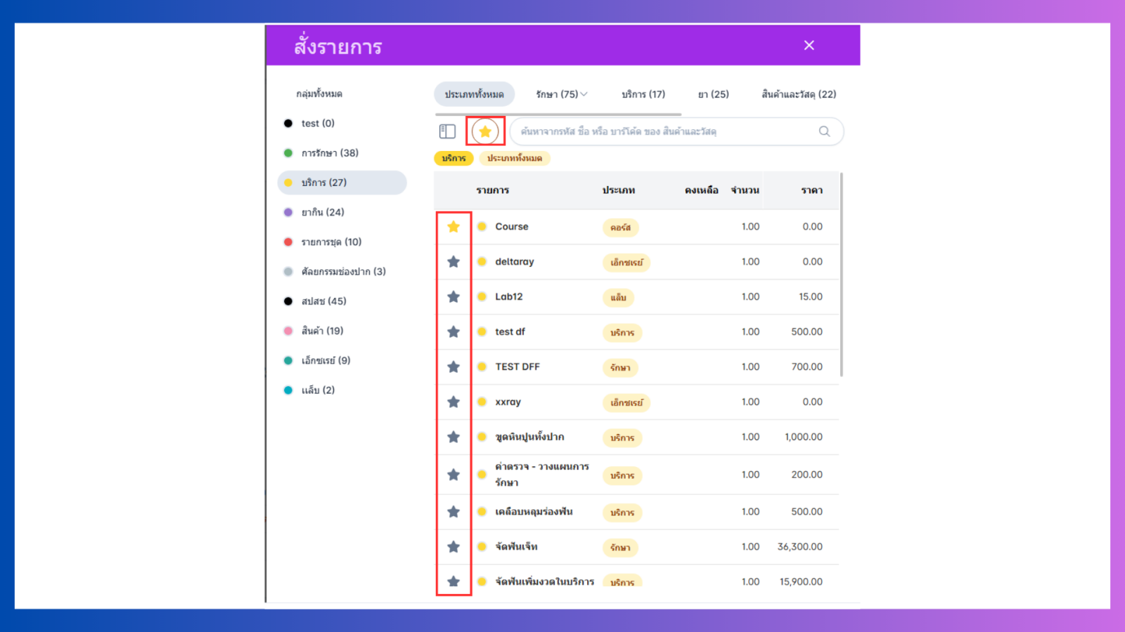 สามารถกำหนดการแสดงข้อมูล รายการสั่งประจำ (star) โดยกำหนด เลือกในรูปแบบ ดาว เพื่อให้สามารถแสดงรายการที่มีกำหนดในแต่ละผู้ใช้งานได้