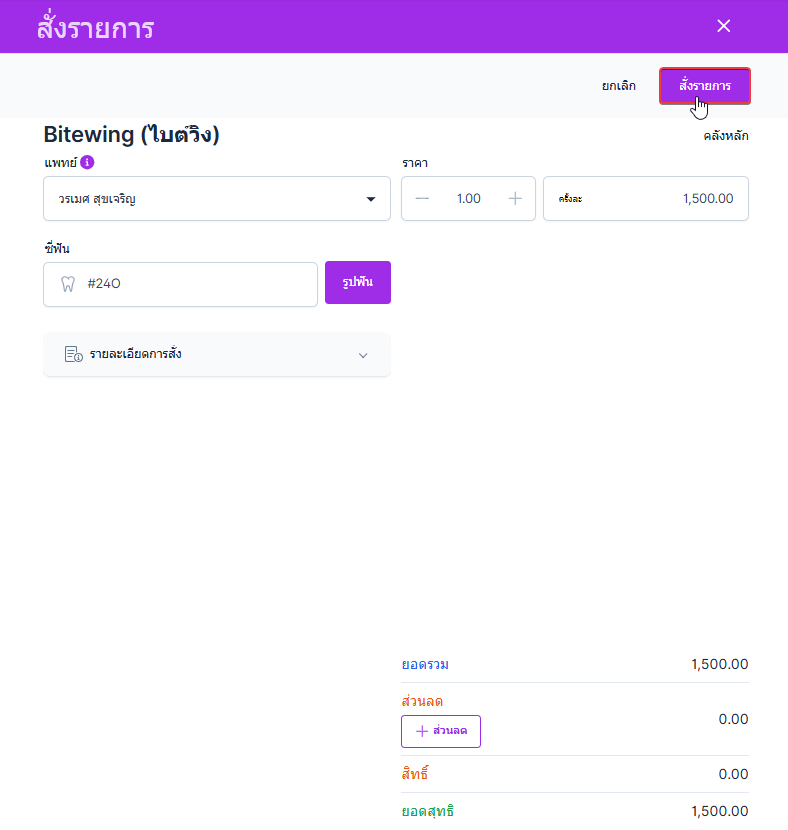 ผู้ใช้งานคลิกที่สั่งรายการ ระบบจะแสดงหน้าต่างสั่งรายการขึ้นมา