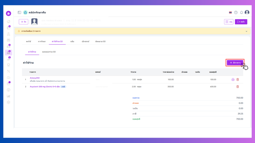 - เพิ่มส่วนลด (ถ้ามี)