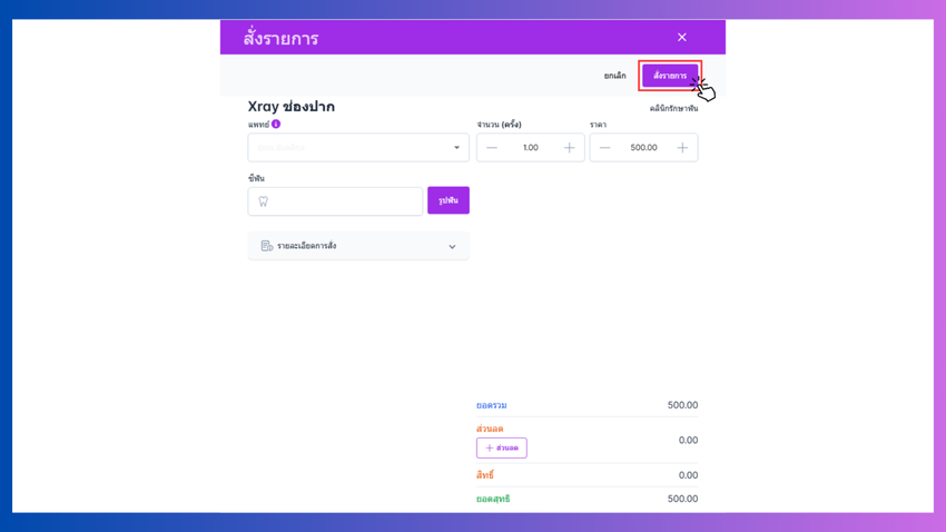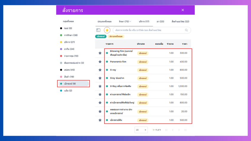 - เลือกรายการเอ็กซเรย์ที่ต้องการสั่ง