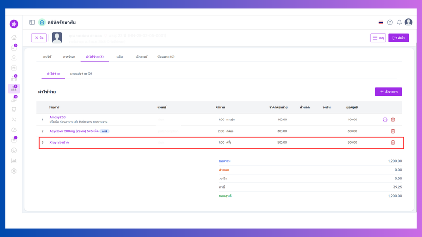 ระบบจะบันทึกรายการเอ็กซเรย์และแสดงในหัวข้อเอ็กซเรย์