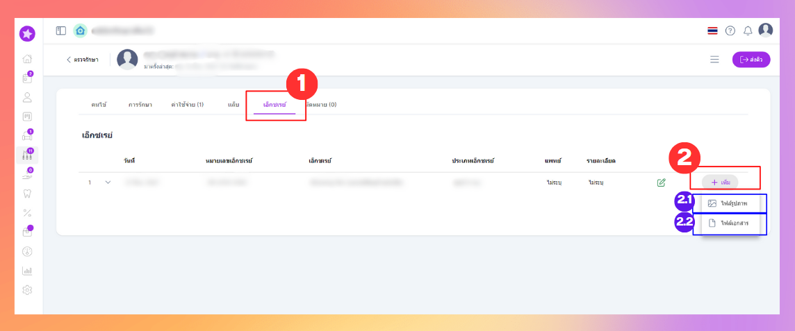 เป็นการเพิ่มไฟล์รูปภาพและเอกสารเพื่อประกอบข้อมูลการรักษา