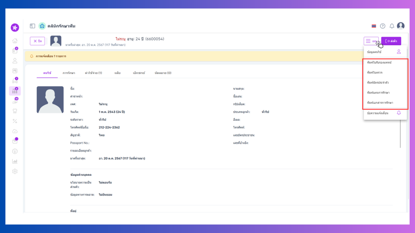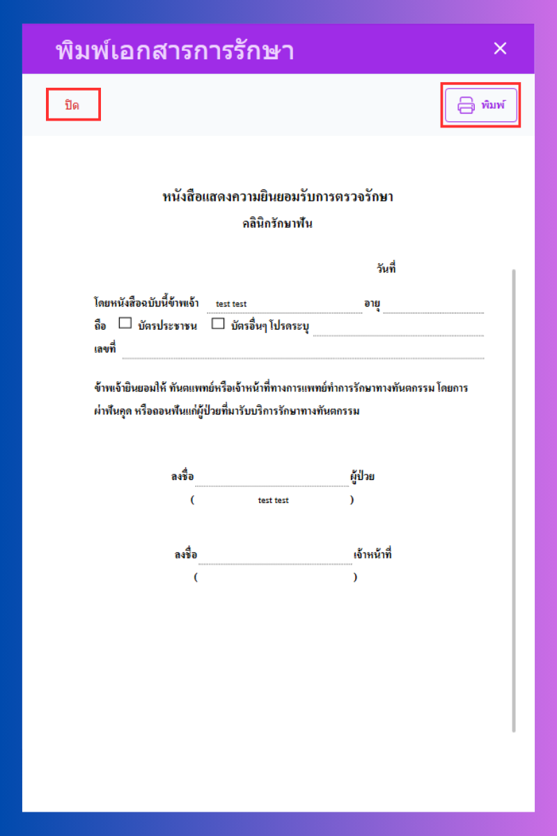 เมื่อกดบันทึกแล้ว ผู้ใช้งานจะสามารถสั่งพิมพ์เอกสารการรักษาได้