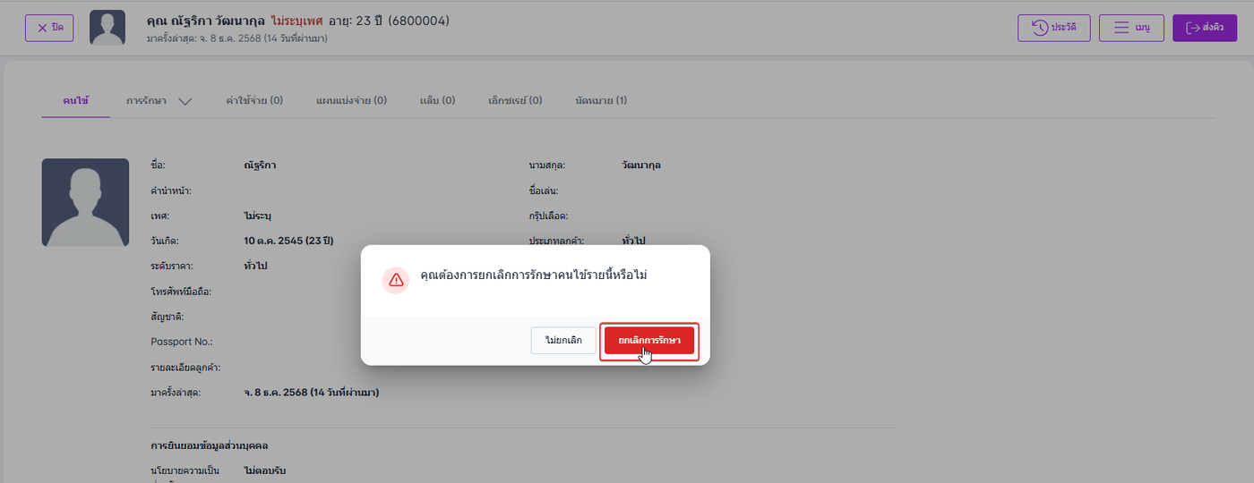คลิกที่ยกเลิกการรักษา เพื่อยืนยันการยกเลิกการรักษา