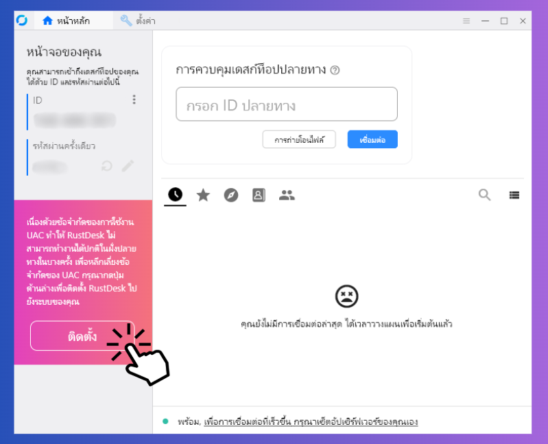 ตั้งค่าโปรแกรมรีโมท Rustdesk