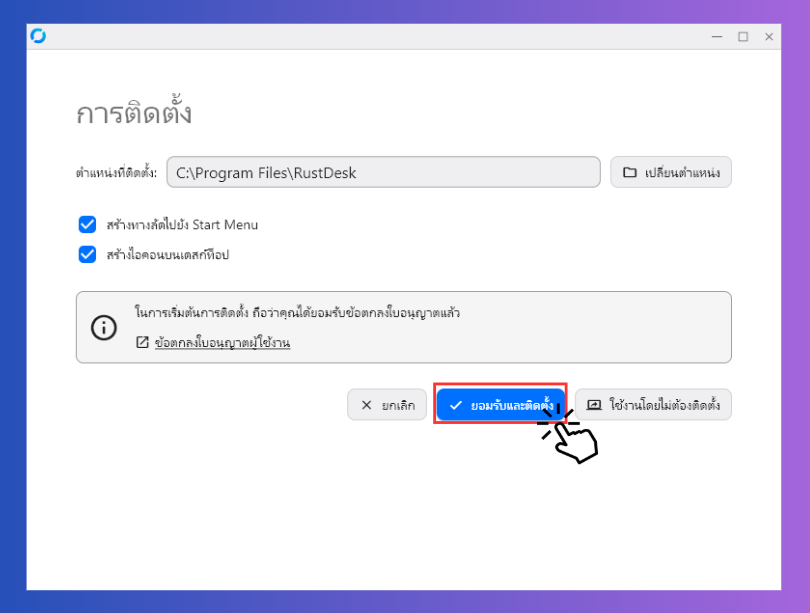 ทำการติดตั้งโปรแกรม โดยกดปุ่ม ติดตั้ง / Install