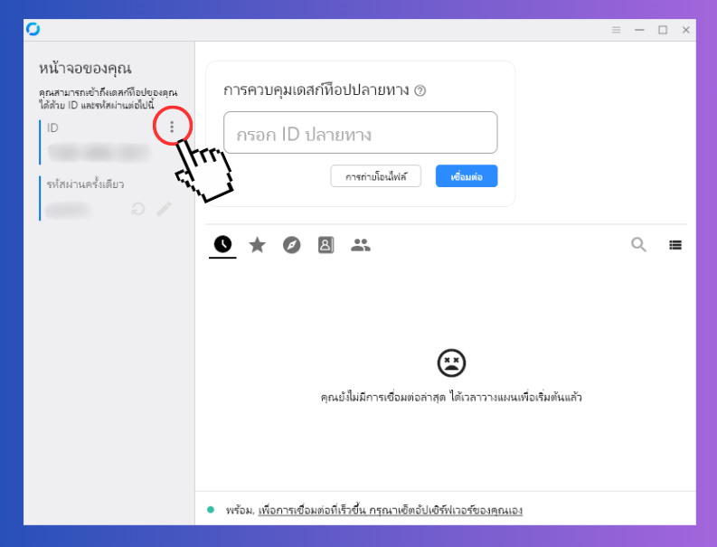 จากนั้นทำการ กรอก เซิร์ฟเวอร์ ID : remote.izpal.net