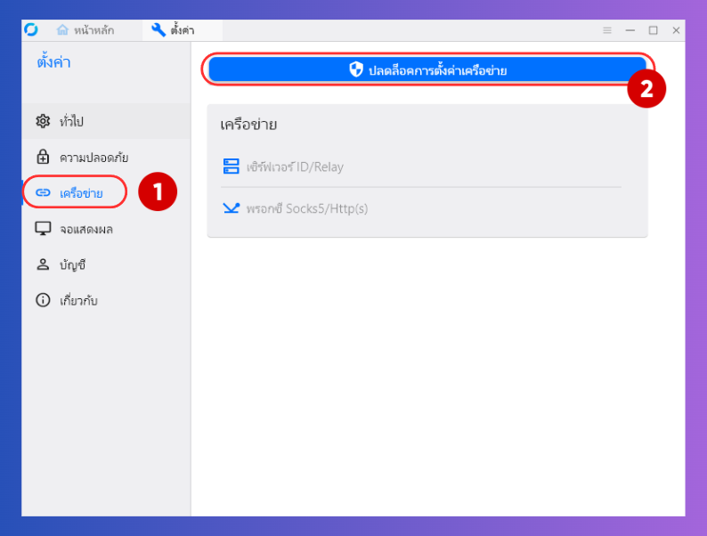 คลิกที่ ปลดล็อคการตั้งค่าเครือข่าย / Unlock network settings